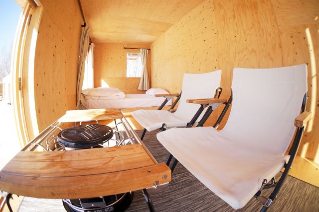 *キャンプフィールド利用料金込、リサイクル料金400円、住箱の前のスペースにシェルターorタープ1張りまで利用可、備付寝具2名様用 - 概 要